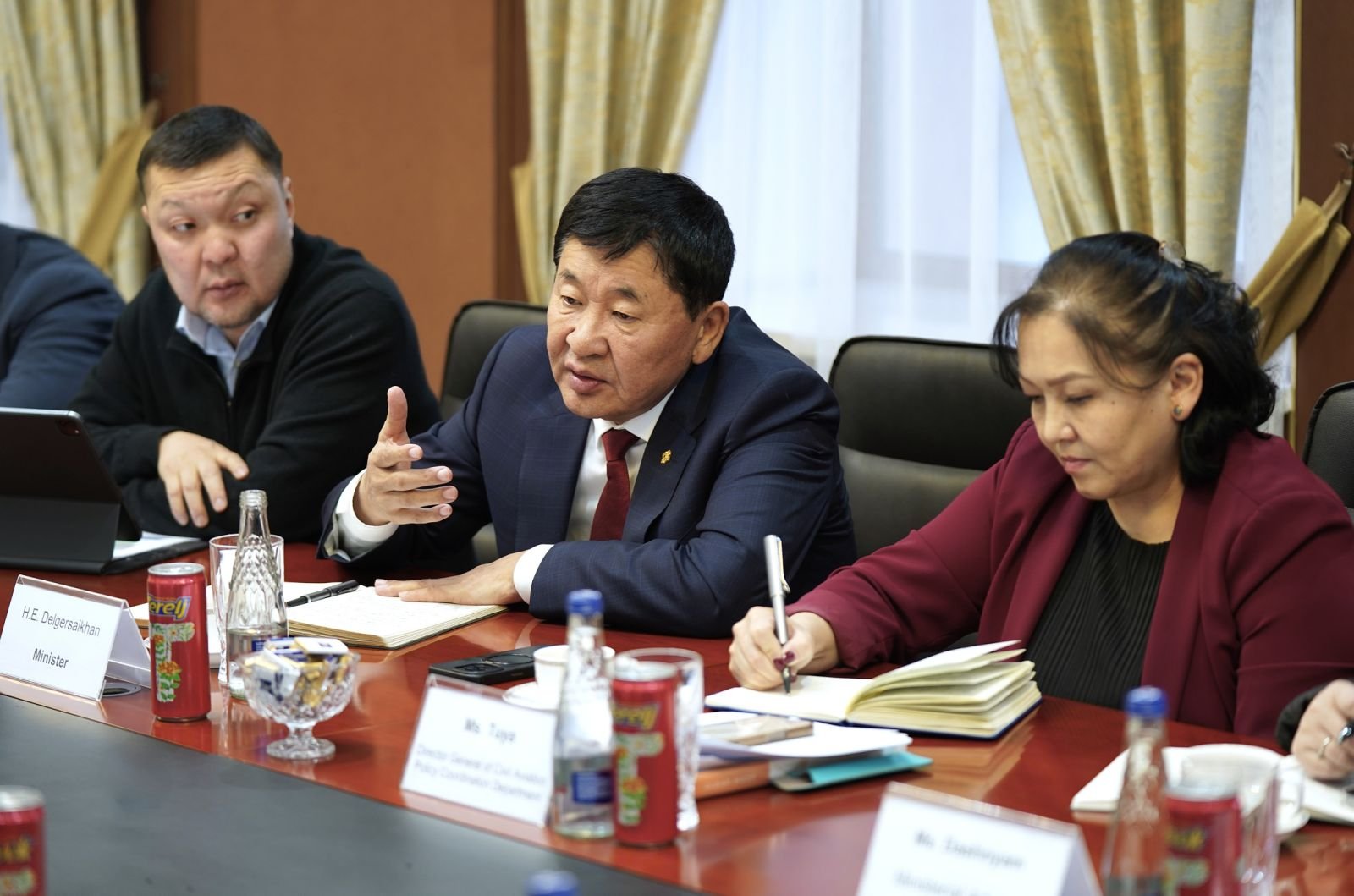 Зам, тээврийн сайд Б.Дэлгэрсайхан Япон улсын Элчин сайд Мсарү Игавахара тэргүүтэй төлөөлөгчдийг ажил хэрэгч уулзалт өрнүүлж, асуудлыг тухай бүрт нь шийдвэрлэхийн төлөө ажиллаж байгаад талархал илэрхийллээ. Мөн Монгол, Япон хоёр улсын хамтын ажиллагааг өргөжүүлэх хүрээнд олон том төсөл амжилттай хэрэгжиж байгаа ч манай улсад хөнгөлөлттэй зээлийн нөхцөлөөр баригдах гэж буй нисэх онгоцны буудлын өргөтгөлийн ажлыг хөндлөнгийн нөлөөлөл багатай, улстөржих, ашиг сонирхлын зөрчлөөс ангид байж, илүү хариуцлагатай, үр дүнтэй хэрэгжүүлэх үүднээс олон удаагийн уулзалт ярилцлагыг хийж, санал солилцож байгааг онцлон хэллээ.