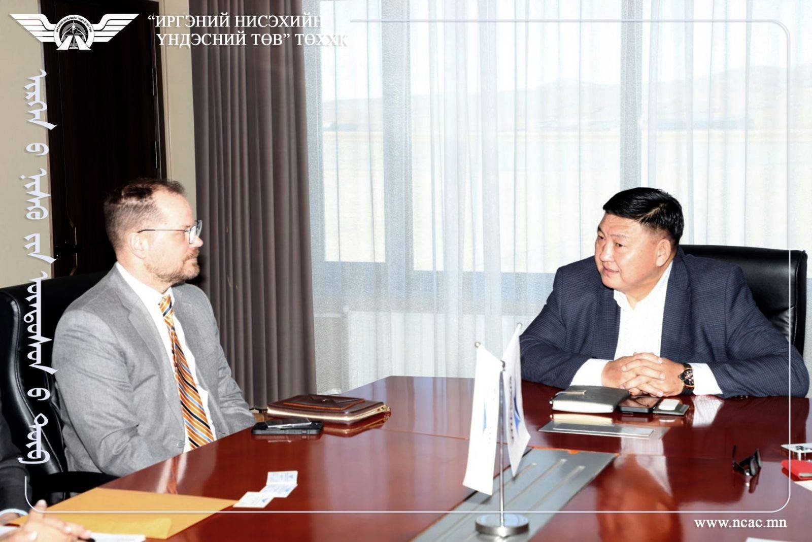 Уулзалтад АНУ-ын ЭСЯ-ны Нийтлэг үйлчилгээний хэлтсийн дарга А.Жэймс, Мэдээлэл технологийн хэлтсийн дарга Э.Мөнхтөр, ахлах ажилтан Т.Ариунцэцэг, “Иргэний нисэхийн үндэсний төв” ТӨХХК-ийн Нисэхийн аюулгүйн хамгаалалтын газрын дарга Б.Сэр-Од, менежер Б.Алтантуяа, Нисэхийн аюулгүй байдал, хамгаалалтын албаны дарга Э.Ууганбаяр нар оролцож, шууд нислэгийн бэлэн байдлыг хангах ажлын явцын талаар харилцан мэдээлэл солилцлоо.